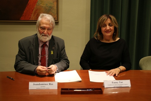Fanny Tur, consellera de Cultura, Participació i Esports i presidenta de l’IEB, i Joandomènec Ros, president de l’Institut d’Estudis Catalans (IEC), han signat un conveni que té per objectiu establir la col·laboració en el desenvolupament general del projecte Tabula Imperii Romani–Forma Orbis Romani (TIR-FOR) i, més concretament, a aquest procés de digitalització i posada al dia de la Tabula Imperii Romani corresponent a les Illes Balears.