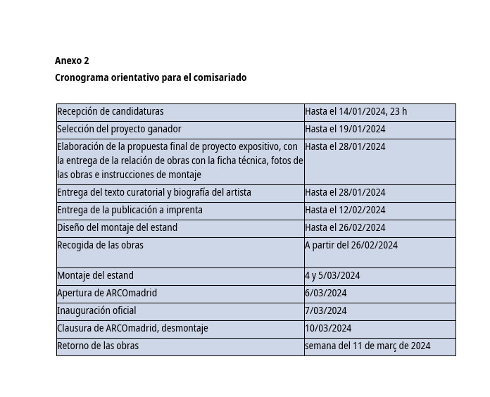 El pago de los honorarios se realizará contra factura al finalizar la edición de ARCOmadrid 2024.